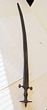 India. Sword c19th to very early c20th Tulwar sword, all steel with typical plain unadorned steel hilt & disk pommel. This curved scimitar blade (25mm wide), o/a length 90cm. C/W leather covered wooden scabbard. Overall GC. |