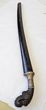 Indonesia. Sword with hand-carved handle, floral design? Set in silver to lower handle, 63cm blade & wooden scabbard. Blade some light, mostly surface, rust. G-VGC. |