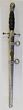 Yugoslavia. Officer's dagger, pre 1945, in need of restoration. All parts (except for the screw) seem to be present. The pommel is detached but does not want to screw into the handle (mating thread). Blade is etched but has corrosion/scratches to the plated finish. The plated scabbard has some shallow dings & scratches. The grip is a black celluloid/plastic type material w/o any wire embellishments (if it ever had any?). Overall GC. |