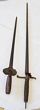 Europe - Swords. Pair of early fencing epees, rusted blades & knuckle guard. The guard & blade decorated by floriated design, ebony Bakelite type grips. Missing 1 cover for top of handle & some cracking to same on 2nd. Surface rust, 1 guard loose. Fair-average condition. (2) |