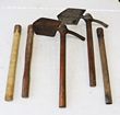 Army. WWI entrenching tools (2) with handles rusted on, 1 is dated 1916 with a Sydney maker the handle on this marked AAOD plus. 2 WWI handles. 1 WWII handle. Average -GC. (5). |