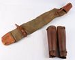 Army. WWI British / Australian large telescope?? carry bag in canvas & leather. Marked with the defence broad arrow 75cm x 15cm, leather cup at top. VGC plus a pr of British / Australian leather leggings, probably WWI. No markings. Maybe officer's private purchase. GC. (2 items) |