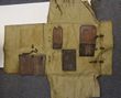 Army. Aust/GB, WWI Field Artillery Roll, tool kit or kitchen. Large hemp webbing construction with leather pouches & pockets. Leather pouch marked/stamped HQ/ 3NM/FA/21. Size unrolled approx 5ft x 3ft. Fair-GC. Most unusual & scarce item. |