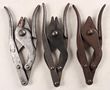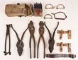 Army. 1918-41 wire cutters folding types (3 prs) of the same pattern. 1 is 1918 dated, 1 is 1941 dated & the other undated. Used condition, all are maker marked. The WWII cutter has a stress crack on the main rivet but still good for display. Show use, slight corrosion & having been cleaned. (3) |
