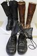 Army. Navy boots, Army knee length brown General Officer boots approx size 8, some slight stitching faults, fronts scuffed but would be nice with a good polish. Pr black knee length butcher boots in leather, has 4 digit number stamped to top, small size leather soles. Pr of size 8 G.P. boots post 1970s. Overall GC. The first 2 hard to get. (3 prs) |