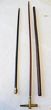 Army. WWI swagger cane, thin polished dowel with cross shaped twin .303 rounds to top & cut down half .303 case with used projectile (MK6 .303) (you can see the indentations made by the lands & grooves of the barrel rifling), dated 1915 to brass cases. C1930s WWII swagger cane, thin wood black painted shaft with N/plated (worn to brass), top with a flattened AMF button glued to top piece. Brass toe, o/a length 58cm. GB/Aust WWI leather bound cane swagger stick, 60cm long. Shows some use with minor wear, no stitching damage. GC. (3) |