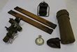 Army. M4 periscope believed to be off an armoured vehicle, dated 1943. Possibly Sherman tank. Gun sight scopes (2), one dated 1945 with mounting brackets. Steel cable (2) with wooden toggle handles & sun compass DD box, missing its sun compass. Fair-GC. Interesting items for the heavy vehicle enthusiast. (7) |