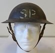 Army. Steel helmet, 1942 date Mark II Brodie helmet with liner & chin strap fitted, white painted lines of unknown origin to front, some paint loss to front brim. Plus WWII slouch hat size 7 3/8, no maker's name. Brown air-vent eyelets, clip type brim hook, no edge trim, dark brown sweatband, no puggaree. Fair - GC. Two WWII hats. |