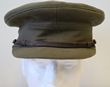 Army. Aust/GB peaked cap, WWI or later, wool peaked cap for an Officer or Warrant Officer. Makers label S. Fisher & Sons, Regent Street London W1. Has holes for cap badge lugs east, west approx 1'' apart. Thin brown leather chin strap with British Royal Arms buttons, leather sweat intact, slightly misshapen from sitting. GC. Scarce Great War era cap. |