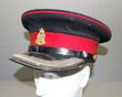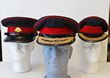 Army. Peaked caps. Blue & scarlet Ceremonial to an Officer of and below the rank of Captain. Plain peak, gilt KC rising sun on blades. Made by Hobsons & Sons, dated 1951. Another to an Officer above the rank of Major, made by CGCF. No chin strap or buttons and to a General Officer with double row of oak leaf for General. By AGCF. GC. 3 diff Officers peaked caps. |