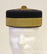 Army. Aust/GB, Pillbox cap, ca 1880 Royal Artillery Officer's pattern. Regular Force, gold bullion braid to top, gold button also, gold bullion braid band, lined in brown silk with leather sweatband, chin strap missing. GC. A rarely seen cap. |