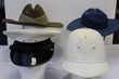 Army. slouch hat, size 65, dated 2000, no chin strap. RAAF slouch hat dated 1995, size 54, colonial pattern fibreglass helmet, size 7 1/8 by Mountcastle, no dome top. ACT Police peaked cap with QC silver staybright buttons, vinyl top, by CGCF. GC. (4) |