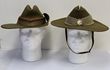 Army. Cadet Slouch hats (2) with badges & puggarees. Brighton Grammar Scholl badge enabled rising sun type. Hat is 1969 dated, Army issue. Cotton puggaree is khaki/red/blue/khaki. Other hat has the round 'Australian Army Cadet Corp' badge to the front. Has a khaki pugaree. Army issue hat. Both hats are in near excellent condition. (2) |