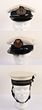 Army. Slouch hat, small hole at top, leather chin strap intact, dated 1991. Australian Major or above blue peaked cap, no chin strap. KC map buttons, by CGCF, Officer's khaki peaked cap, QC map buttons, brown leather chin strap, by CGCF. Plus baseball style cap to U.N. Mission East Timor. Good-Fair. Good grouping. (4) |