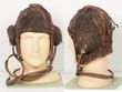 RAAF. 1939-45 Type 'B' leather flying helmet comp with 'Gosport' communications tubes & earphones. Evidence of name, but hard to decipher. Brown leather, zippered ear cups, buckle adjustment across brow & neck. Provision for oxygen mask & with goggle retention straps. Buckle under chin fastening. Leather quite dry & scuffed overall. Stitch wear, particularly to ear cups. GC overall. A 'salty', well used example common to most trainee pilots |