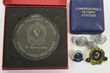 New South Wales Police Sydney 2000 Olympics, lot of 7 items. Inc 'glass' Olympic Volunteers in Policing 'In Appreciation' medallion in its box (c75mm medallion), NSW Police Olympic pins (2), an empty box for the Commissioner's Olympic Citation & NSW Police buttons (3) (QC). (7)