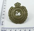 Western Australia 1914-20 Police 'bottle-top' helmet plate. King's crown, white metal. Voided swan (early short neck variety) thin metal strike on long lugs for helmet 48mm. gVF. Scarce