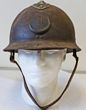 France. WWII era French North African Troops Adrian pattern steel helmet. A near relic example with most of the green finish worn off & few small dings to R/W/S. Liner in poor condition & coming away from the shell. Still retains the helmet badge of RF over crescent as worn by all French Mohammedan Troops. Poor. |