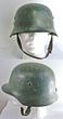 Hungary. 1939-45 Mod 1935-38 steel helmet. Similar to German M35 but made in nickel-chrome steel with larger grommet heads & with backpack strap bracket on rear skirt. This example made by Gyori Vaggon Esgepgyar & stamped 'GY 66' & with Hungarian Coat of Arms arsenal mark. Full original leather liner & chin strap intact (this later dated 1944). Retains its original blue/grey paint finish. VGC. |