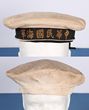 Japan c1939-45 Navy Sailors white top hat. Very nice condition hat with earlier embroidered tally band. Looks hardly worn. Clear stores label inside with intact sweat shield. White herringbone top is a little dusty from storage or handling - no damage or stains/moth. |