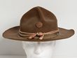 USA. Army. 1916-20 M.1911 Enlisted Man's Campaign hat with post 1916 addition of chin strap grommets. No brim stitching variant. Khaki ribbon band with cap cords for Machine Gun Units. Bronze 'US' disc attached through front air grommet. Sweatband with maker name: 'P.J. O'Hare, Roseland NJ'. Small 'United Hatters, Caps & Millinery Wkrs Int Union'. Label attached beneath sweatband. Size 7 3/8. Small section of sweatband missing from back. VGC |