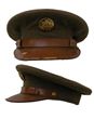 USA Army. 1939-45 enlisted ranks visor cap, olive drab wool body with brown leather visor & chin strap, gilt em's cap disc & buttons 7¼ by 'UCI'. Wear to visor brim & stitching. VGC |