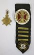 Army. 1939-45 Welsh Guards Western Command large enamel badge mounted on black ribbon for wear with a pin brooch, 4 gilt bars (Service?). 1915 dated enamel badge SFSB depicting cup & saucer. Most likely a Patriotic or Comforts organisation badge from WWI, also 1914 Mons Star miniature (no ribbon). No damage to enamels. gVF. (7 items)