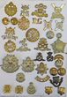Army. Cap, collar badges, shoulder titles & buttons dating from Boer War to 1952. The odd restrike amongst them. Odd flts, approx 6 have 1 or no lugs. Mostly VGC with some scarcer items included. (66)