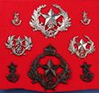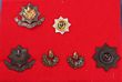Army. WWI & post Officer's badges. Of note Middlesex Regiment bronze hat & collars all on lugs. Gloucestershire Regiment bronze hat badge on blades, Brigadier's bronze badge on blades, King's Royal Rifle Corp cord boss. Machine Gun Corp bronze cap badge, 2 blades but only 1 still attached. Badges (16), buttons (2) plus a title. Somerset Light Infantry OSD. VGC. (19)