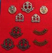 Army. Collection of 28 Military cap badges, collars & titles. Mostly original with a few later striking. Of note are WWII Lugger Royal Marines. WWI Non Combatant Corps (this was a cap & title badge). New Zealand WWI 3rd Rifle Brigade cap badge, also 12 Nelson Infantry Regiment collar. WWI/II Cambridgeshire Regiment cap. Mostly GC. Some nice badges in this lot. (28)