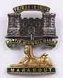 Army. Cap & collar badges, shoulder titles & buttons. Of note is the other ranks Militia (no Battle Honours) Border Regiment helmet plate centre & original (unissued) Guards Machine Gun Battalion cap badge on slider. Note Carabineers badge missing brass off scroll & crown. WWI RFC & RAF cap badges. VGC. (34 items)