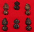 Army. Royal Fusilier Officer's badge collection. Inc lovely silver, gilt, enamel forage cap badge by JR Gaunt London. With matching collar pr, pr for mess dress & large full dress silver gilt pr. Also a set of service dress bronze cap & collars & a pr of the less common small variety service dress collars. VGC-EXC. (12)