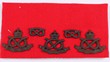 Army. 1953-60. 43rd Infantry Battalion The Hindmarsh Regt hat & collar pr, 45th Infantry Battalion St George Regt opposed collar pr, 58/32nd Infantry Battalion Melbourne Rifles hat (one lug), 59th Infantry Battalion Hume Regt hat (lugs replaced) & a collar (no lugs) & a Sydney University Regt collar. Also (3) wool shoulder titles (bordered) for St George & Hume Regts. Refer Cossum pgs 25, 24. (12)
