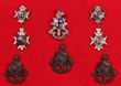 Army. Northamptonshire Regiment Officer's post 1898 badge selection. Inc silver/gilt cap badge by JR Gaunt with matching silver gilt enamel collars, all on lugs. Also bronze service dress cap badge on blades & matching collars on lugs. VGC. (6)