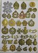 Display card. Lot of 50 badges & buttons c1900-70s, mostly Army. Noticed a NZ WWI YMCA hat badge, NZ Postal & Telegraph, NZMR titles & an oxidised (Cadet?) badge QC with crossed rifles, button - Wellington Guards, button NZASM. Mostly G-VGC (50)
