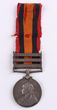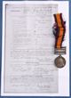 1899-1902 Queen's South Africa Medal with 3 clasps CC, Tvl, SA02 impressed officially '121 TPR G McDonald AUST COMM H' original ribbon, tatty. Trooper George McDonald born Mudgee, NSW 1876 enlisted 8 Feb 1902 B Squadron 1st Battalion Australian Commonwealth Horse. With copy of Attestation.