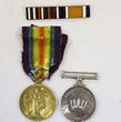 1914-18 2nd & 17th WIA Victory Medals. '654 PTE H. O'NEIL 17 Battalion AIF'. Henry O'Neil from Balmain. Enl 5/3/15, disch 23/5/17 due to wounds. Re-enlisted 10/11/17 with 2 Battalion & returned to England. RTA 23/9/19. '1860 CPL W. KENNEDY 2 BN AIF'. William Kennedy enl 3/2/15, RTA 9/3/19. From Newtown. (2)