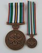 1957-74 Cadet Forces Medal, QEII. Full size & miniature, both Type II Die Gratia with original ribbon. Un-named. VGC. A similar single medal sold for $240 + comm in Auction 384 (lot 21483). (2)