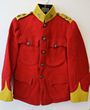 Army. post 1902 Patrol jacket in scarlet with yellow facings, silver Manchester Regt collars & buttons for a Volunteer Officer, 2 silver gilt pips to yellow epaulettes, small sized tunic with some minor mothing. Named H. Lomax to Manchester tailor's label. 4 external & 4 internal pockets. GC. |