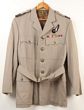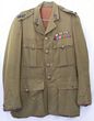 Army. Artillery WWII khaki wool officer's service dress tunic to a Captain in the Royal Horse Artillery. With WWII era jodhpurs. No tailor label or owner's name. Very good quality officer's tunic with KC Royal Horse artillery ball buttons & rank pips in brass. Bronze artillery collar badges present. No other insignia. A ribbon bar for service in Italy & Africa with the eighth Army is present. Minor moth grazing. Repair to inside liner around the arm pits. GC. |