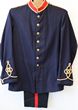 Army. RA Gunners parade jacket (blues) yellow cord braid to lwr sleeves, collar trim + epaulettes Firman & Sons London make KC bras RA button QVC buttons to shoulder epaulette terminals. Hence circa early 1900s, pre WWI. Faded English tailor's tag possibly dated Nov 1904. Also on label where unit designation is C.O.O. P.M.Burg R.A, Royal Army clothing factory. Stand up red felt collar. Brass 'D's for belt. With pair Artillery trousers. VGC for age, no moth damage found. Edwardian period Gunners parade blues jacket in VGC. All buttons present & correct for period. (2). |