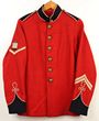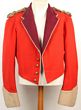 Army. Parade jacket regimental red wool c1920s-40s with black collar, epaulettes & cuffs. Rank chevron for LCPL & embroidered drum to right sleeve, inverted chevrons (2) to LL sleeve. Full set of brass KC British Army General Service buttons. Red & white cord embroidery to back, sleeves, collar & cuffs. Another c1950s red Bandman's jacket in wool & lined in cotton drill. Black velvet collar & cuffs. No buttons to front of jacket. Epaulettes in yellow cord as are cuff decorations. Trumpet buttons (2) to epaulettes. VGC, some damage to jacket 2 collar. |