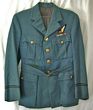 Army. pre 1952 Officer's wool blend Walking Out dress tunic, rifle green. All buttons are 1939-58 pattern Bakelite, detachable epaulettes present, missing pips to rank of Captain, unnamed. Comes with matching Rifle Brigade black stripe on green trousers. GC. A nice Walking Out uniform to the Rifle Brigade. |
