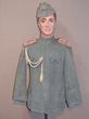 Bulgaria. 1939-45 A very rare Axis officer's (Bulgarian Army) grey twill Imperial tunic, trousers & grey woollen side cap. Four pocket tunic with deeply scalloped pocket flaps. Concealed front closure with 7 grey zinc buttons. 2 pairs of hooks & eyes to front neck closure. Officer's shoulder boards with 2 25mm wide silver wire, braided stripes on a red underlay, white piping to the outer border. Gilded metal 'RA' & royal cypher (Gilt worn on cypher) with a plain, domed silver button to ea shoulder board. Has a white braided cord aiguillette. Shoulder boards & aiguillette possibly war. Tunic shows service wear with a very small hole to the back section. Grey twill jodhpur style trousers in VGC have re-enforced seat & inner knee sections. Two oblique angled slash pockets to front. One buttoned rear pocket. Has belt loops & brown plastic buttons for attaching braces. Grey zinc buttons to the fly. 3 grey zinc buttons to each lower leg closure. Ink stampings to inside of waistline. Light grey woollen side cap has O/A light soiling to exterior & interior cotton sweatband. An attractive highly ornamented axis officer's tunic which is not often seen for sale in Australia. VGC |
