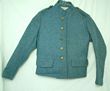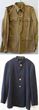 Italy. Army cotton khaki brown Italian pattern 40 Tropical tunic from WWII. No insignia. Clean condition, appears unworn. No labels or dates. Cloth belt missing. Nice condition. Navy blue light weight wool jacket similar to Patrol jacket (but without externa pockets or 'V' cuffs). Unknown identity. Had collar insignia at one time. Stand collar. No pockets ever fitted. Buttons replaced with plain brass types (fitted with rear rings). No insignia present. Near excellent condition. No moth/damage. Interesting uniform duo. |