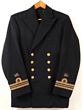 South Africa Navy. 1940s/50s Officer's dark blue wool double-breasted jacket to a Lieutenant Commander. Fine wool, quality jacket with all its KC South African Navy buttons. Rank curl has letter 'V' inside it. Each cuff has the S.A. Lion badge in gold bullion. No name or labels inside the jacket. Light tarnish to cuff rank & badges. No moth or damage, little/no wear. Complete & very clean. |