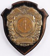 Great Britain:1930-32 RAF Sports prize shield. Brass on wood backing. Shield shape 135mm high ornate design of RAF. Pilots wings at top with wreath around shield depicting a fencing comp. Title plate below engraved: 'Inter-Uni Fencing-Championship, junior 1931-2 winner ----' . gVF.
