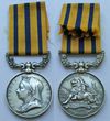 1896 Ashanti Star , unnamed. A deceivingly good copy. Boer War QSA medal bars 'NATAL' & 'WEPENER' (slightly diff so one may be a copy), 1962 GSM bar 'Malay Peninsula', mini ribbon bar 'Pacific Islands' & a Defence of O'okiep Cape Copper Company medal. (copy). (6 items)