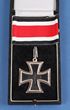 1957 Knights Cross of the Iron Cross version, high quality 3 piece construction, magnetic centre, silvered frame. 1960s issue. Cross exc, ribbon has been roughly shortened, case VGC. These de-nazified awards were issued by the government to Veterans who were awarded the Knights Cross during the War. Production ceased in 1986. |
