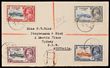 | 1498 Click for more photos | ca 1856 cover front franked QV Diadem 2d blue & QV Registration vermilion & Prussian blue imperf, 3 or 4 margins, tied by barred numeral '9' of Bathurst, with 2-line 'REGISTERED BATHURST' h/s to Liverpool. SG 102 & 109 cat £204+ as loose stamp alone & 'from x3' on cover. (P) | SOLD at A$120 | ||